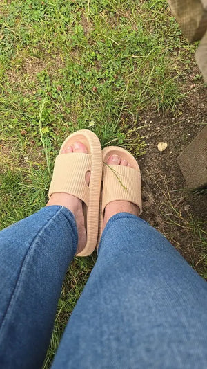 Our cloud slides provide soft, plush cushioning that cradles your feet, making every step feel like a walk on clouds. Perfect for indoor relaxation or a casual stroll, these slides reduce foot fatigue, ensuring you stay comfortable all day.