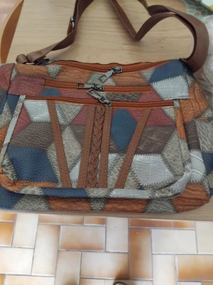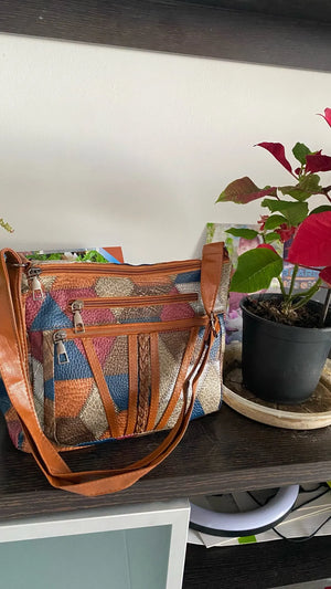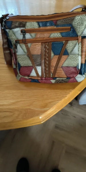 The bag features multiple pockets, including a cell phone pocket and a zipper pocket for organization.
